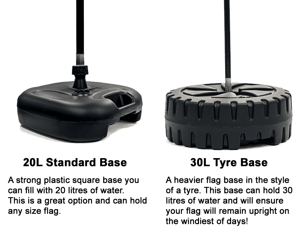 Flags are perfect for outdoor events, festivals, storefronts, trade shows or exhibitions. Each flag is supplied with an easy to assemble full fibre flag pole and carrying case. Various base options are also available.