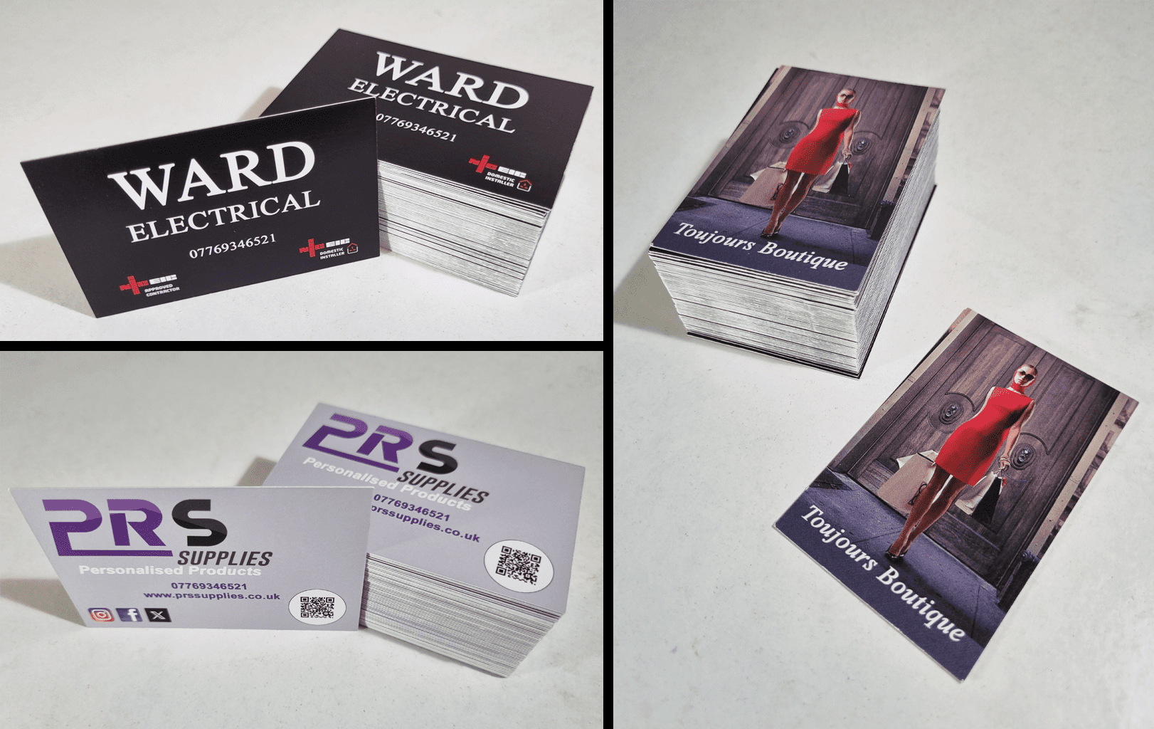 88x55mm Square corner business card printed on heavyweight, 450gsm silk finish card which is more rigid than most business cards found on the market giving excellent results.